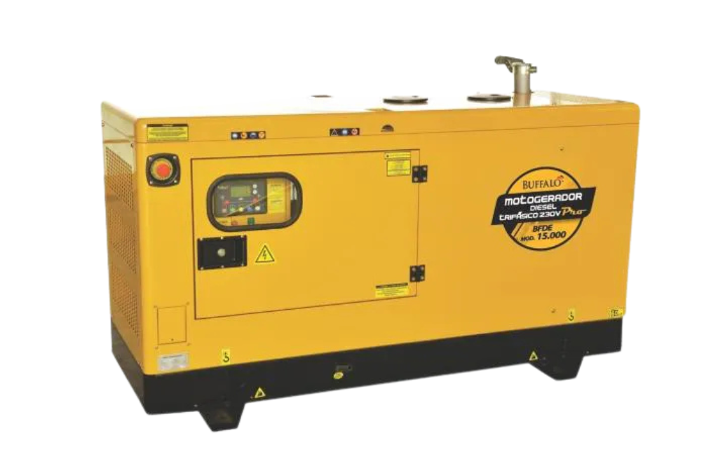 Gerador diesel trifásico de 15 kVA, com motor 1800 rpm, partida elétrica, AVR brushless e ATS de série, oferecendo energia estável, baixo consumo e operação silenciosa.