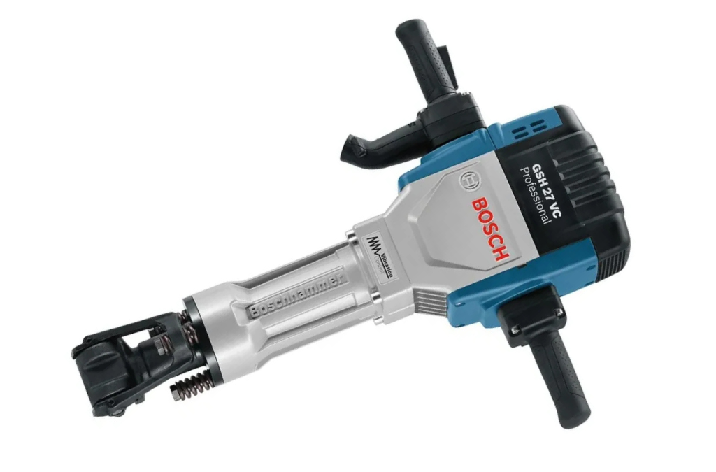 O martelete demolidor rompedor Bosch GSH 27 VC de 27Kg traz o potente motor de 2.000W, capaz de remover até 10 toneladas de concreto por dia.