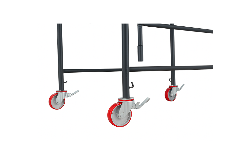 Ideal para estruturas de andaimes tubulares que exigem mobilidade frequente, como em reformas, manutenções prediais e trabalhos em fachadas.